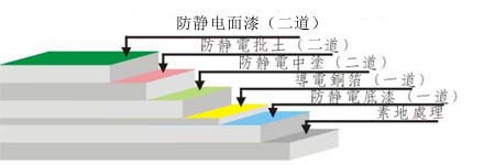 ③防靜電底漆:采用滲透性及附著力特強防靜電環氧底漆滾涂一道,增強表面附著 力;